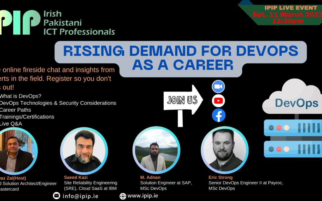 iPIP-Irish Pakistani ICT Professional Association is delighted to arrange a Fireside chat with industry experts in DevOps, the most demanding profession in the IT sector. The webinar will be live on Facebook and zoom. To register your interest click the link below.